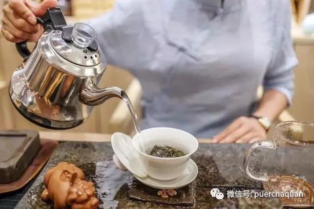 二是要控制苦涩的时候。直接用沸水冲泡普洱茶,很容易将茶的苦涩物质泡出来。如果采用降温泡茶方法和技巧,是可以控制普洱茶茶汤的苦涩的。可以将沸水留几分钟,让水温降到85~90℃,另外再配合一下方法就可以有效控制普洱茶的苦涩。1.要选用大壁薄的容易散热的盖碗。2.投茶量不要多,茶完全泡开后的叶底再盖碗的一半以下就行。