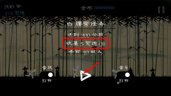 4、完成分数与灵魂收集后,点击【开始-按钮】,继续完成【杀死-10敌人】任务解锁后续任务。